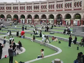 📍Minyuan Square, located in Tianjin, China, was once the city's football stadium. It has now been renovated into a public space for various activities, including relaxing, with shops and restaurants.