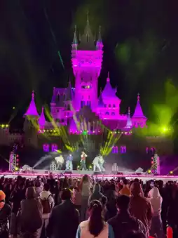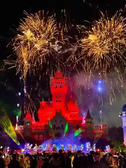 ✅ Fireworks Show: Starts promptly at 8:00 PM, fireworks against the castle backdrop are so dreamy