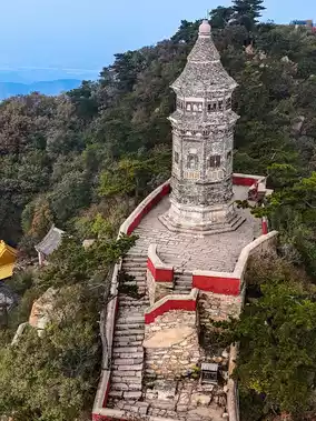 ⛰ Guayue Peak: At 864 meters elevation, the Dingguang Buddha relic pagoda stands tall on the summit. Also features the characters "Panshan" written by Emperor Qianlong.