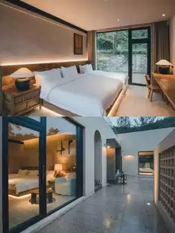 The moment you enter the guesthouse, you’re wrapped in the autumn and winter atmosphere! It’s still that wabi-sabi style courtyard, but the stone walls and wooden beams are draped with caramel-colored vines, sunlight softly filters through the arched windows, falling on rustic pottery and woven rugs. Every snapshot feels like a warm-toned movie scene. On a clear morning, sitting at the room’s doorstep daydreaming, listening to birdsong and watching mist swirl around the mountain’s red leaves, even your breath carries the fresh sweetness of plants—quieter than summer, with an added sense of peace!