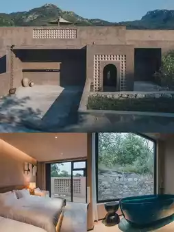 Looking for a place to unwind this autumn and winter? Stop wandering aimlessly! The Luolan guesthouse in Jixian, Tianjin is absolutely perfect at this time of year—mountainsides turn golden and orange-red, lying in a panoramic floor-to-ceiling window room watching the colorful forest, and at night, gathering around the fireplace with hot mulled wine. Friends on social media will ask if you’ve gone to a small southern Chinese mountain forest!
