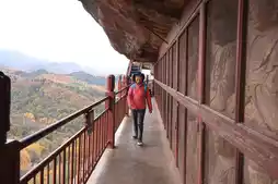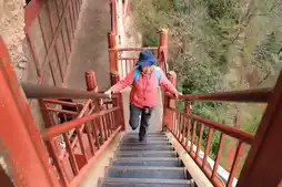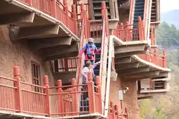 The plank paths hang precariously on the steep cliffs, while the carvings on the Buddha statues carry the warmth of time, and even the wind whispers echoes of history.