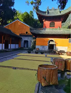 ✔️ Zhizhe Pagoda Courtyard: The ancestral temple of the Tiantai Sect hidden in the mountains, housing the flesh pagoda of Master Zhizhe. The entrance is framed by red maples like rosy clouds, and inside the courtyard, four ancient plum trees stand strong and aged, evoking thoughts of the winter plum fragrance.