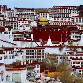 Ganden Monastery (Tibetan: དགའ་ལྡན) or Ganden Namgyeling or Monastery of Gahlden is one of the "great three" Gelug university monasteries of Tibet. It is in Dagzê County, Lhasa. The other two are Sera Monastery and Drepung Monastery.