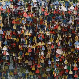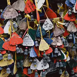 At the bottom, there are both a photo spot with the landmark and a tunnel of bells to make a wish. When we reached this point, there were a lot of people. The wind was strong and our hair was disheveled.