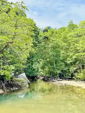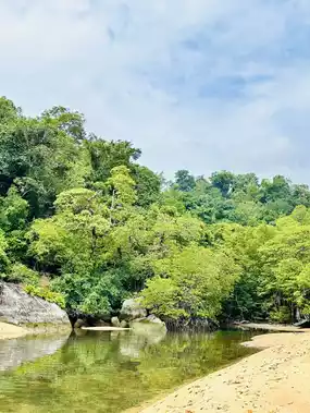 Tioman Island's estuarine wetlands are a magical place where rainforest meets the sea. Clear streams flow gently toward the sea, their banks lined with coconut trees and tropical trees, forming a unique ecological corridor. The vegetation here adapts to tidal fluctuations and the alternation of salt and fresh water, nurturing a rich habitat for flora and fauna. Walking along the riverbank, you can feel the breath of nature, as water birds fly by and fish swim leisurely, making time seem to slow down. This estuarine wetland is more than just a beautiful sight; it embodies nature's eternal cycle of life.