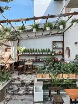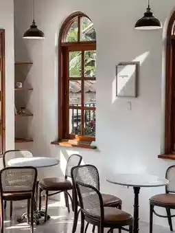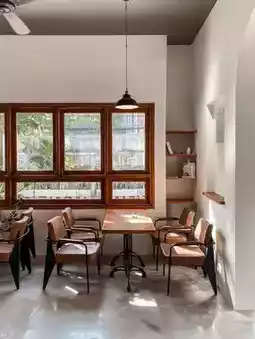 The shop has air-conditioned and outdoor space. The design of the shop is simple and gentle. There are bookshelves. I see many young people bring laptops here so the shop is quite crowded. The shop has a very eye-catching cake counter. When you buy a cake to eat on the spot, the waiter will heat it up. I find the cake quite suitable for my taste. The drink is also quite delicious. Recommend. Will come back if I have the chance.