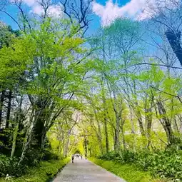 In mid-May, the snow has melted and the season of beautiful fresh greenery has arrived. Streams flow on both sides of the sidewalk, and the buds of the plants have begun to sprout, allowing you to enjoy nature to the fullest✨
