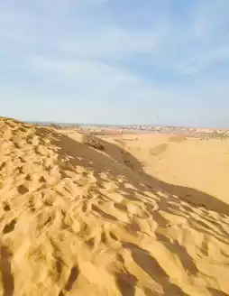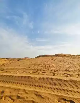 Standing here, every grain of fine sand is a gift from nature, as if standing firm against the vast sky. Feeling each particle of sand jump beneath one's toes, that immersive experience of becoming one with nature, is the true essence of a desert journey.