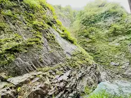 The long tunnel, stretching nearly 1 kilometer, was apparently used for transportation in the past. The view from the observation deck, with the exposed strata of the earth, is impressive! And if you walk to the end, there is a beautiful photo spot with a reflection of the water surface!