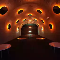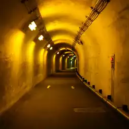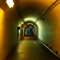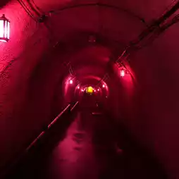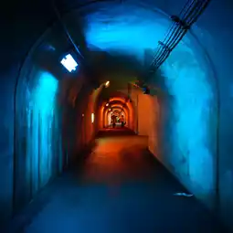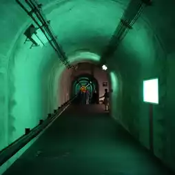 The inside of the tunnel is lit up with colorful lights,
