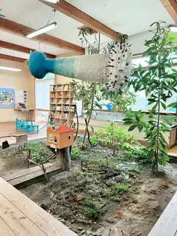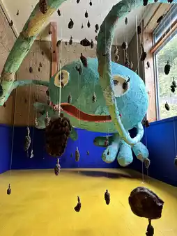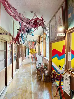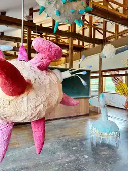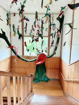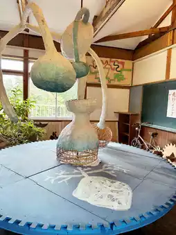 Various creatures fly around the school building as artworks, including "Toperatoto", a ghost that eats the laughter and chatter of the children who attended the school at the time.
