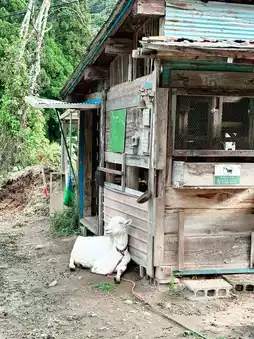 The school In the garden, a mother and her goat child live quietly, as if they had jumped out of a picture book.
