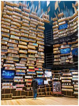 The stage where the super famous group sang at the Red and White Song Battle a few years ago! That's the Bookshelf Theater inside the Kadokawa Musashino Museum 📚