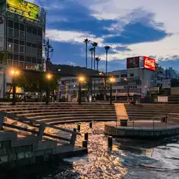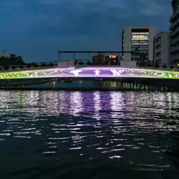 From an aerial view of Tokushima City, the island surrounded by rivers resembles the shape of a gourd, hence the name 'Huludao'. The sightseeing boat that travels around this island is called the 'Huludao Water Taxi'. During the ride, you can experience the splash of water and the thrill of passing under bridges, making it feel like an amusement park ride while touring 'Water City Tokushima'. The boarding and alighting points are conveniently located around Huludao.