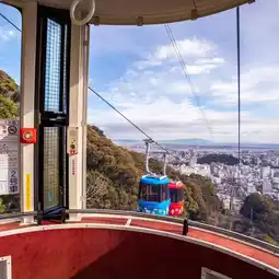 The AWAGIN Meishan Cable Car connects the 5th floor of the Awa Odori Hall at the base station to the summit station of Meishan at an altitude of 290 meters. The cable car runs approximately every 15 minutes, offering views of Tokushima's seasonal natural beauty, such as cherry blossoms and autumn leaves, through the windows. From the observation deck at the summit station in Meishan Park, you can enjoy not only the beautiful night view but also, on clear days, see the Yoshino River, the Awa Mountain Range, Awaji Island, and even the Kii Peninsula.