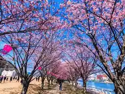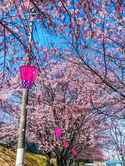 During my visit on March 21, 2025, the cherry blossoms in the park were in full bloom, and there were elementary school and kindergarten groups bringing children to enjoy the park.
