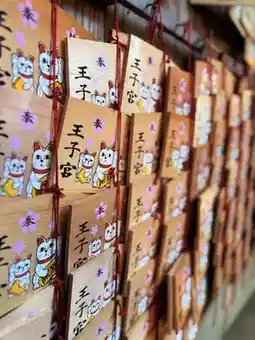 The story dates back 300 years when a woman named Asatsu faced a tragic fate. Her husband borrowed money from a wealthy man and died from exhaustion after repaying the debt. Despite clearing the debt, they failed to obtain proof of repayment. Asatsu pleaded her case to the magistrate but was sentenced to death. Before her execution, she asked her beloved cat, Ayu, to avenge her. Ayu turned into a vengeful spirit, haunting the wealthy man and the magistrate. Eventually, the Awa domain magistrate, Hasegawa, built a shrine to honor Ayu, calming the unrest. Ayu became known as the "Cat God of Wish Fulfillment," making Oji Shrine a popular site for worship.