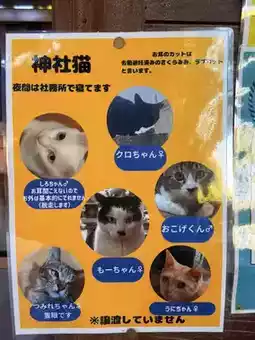 Today, the shrine is home to six cats, whose names and photos are displayed on the walls for visitors to get acquainted with them. A playground has also been built for the cats to enjoy. Shrine staff mentioned that they provide food and water not only for the resident cats but also for any stray cats that come by, making the shrine a sanctuary for them.