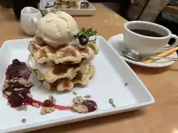 This time, I had a Belgian waffle with vanilla ice cream. 🥰