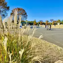 Yume Hiroba is one of the free areas of Showa Memorial Park on the Tachikawa Station side. It is a very large grassy area, so you can enjoy it just by itself. There are Japanese silver grass plants planted in the surrounding area, so in autumn you can enjoy a very autumnal atmosphere.