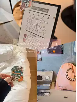 "Official LINE friend addition campaign" "Those who add friends will receive an original hotel sticker at the front desk!" 🧡