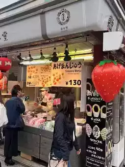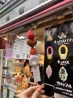 They are famous for their deep-fried manju, but they also have cute sweet skewers.