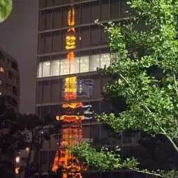 Then go to Leshiba Park, which is one of the places to take pictures of the full view of Tokyo Tower, when you arrive there are already tourists taking pictures, Tokyo Tower night view is really beautiful, is a sight not to be missed in Tokyo free travel.