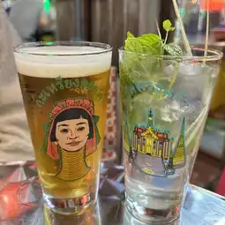 The restaurant style is very interesting. It looks like you have really been to Thailand. There are big barrels of wine. Actually, it is not very delicious because too much ice is added. It becomes watered down halfway through the drink, but it is fun to check in.