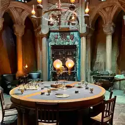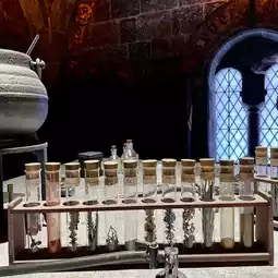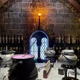 The Gryffindor common room, the Quidditch filming experience, the Potions classroom, and Headmaster Dumbledore's room. Fawkes the phoenix is also in the headmaster's room.
