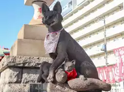 There are not many lion dogs but lion foxes standing at the entrance to the shrine grounds🦊
