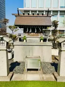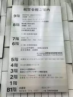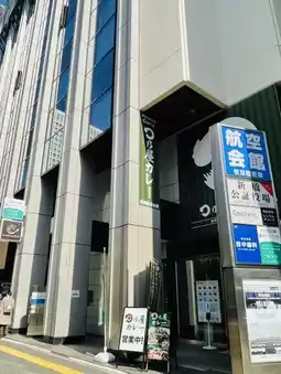 There is a building called "Aviation Kaikan," and according to the sign, there is a shrine on the 9th floor.