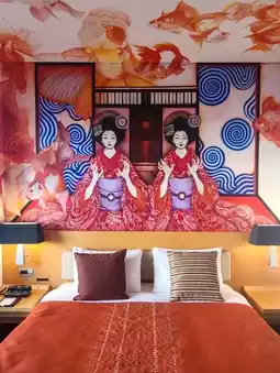 The "Artist Rooms" are painted directly on the walls of the guest rooms, and are renovated by artists while they are staying at the hotel.