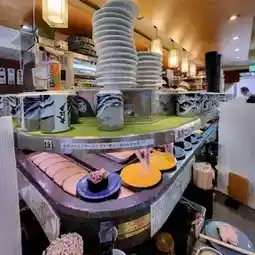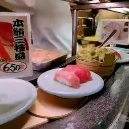 The restaurant has a conveyor belt for us to choose our own sushi or order directly from the chef. There is an English menu with clear pictures. The price starts at 180 yen and up, with the color of the plate separated by price.