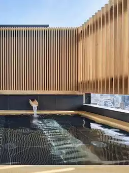 The top floor of the hotel has a sky lounge and open-air hot springs.