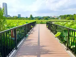 The scenery changes with the seasons, and in spring you can of course enjoy the cherry blossoms, but in summer the lotus spreads all over the place, and the magenta flowers bloom beautifully!
