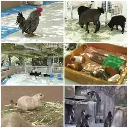 There are goats, roosters, guinea pigs, penguins, turtles.. all very active and cute, 🐢🐑🐓🐔🐧🐧🐧