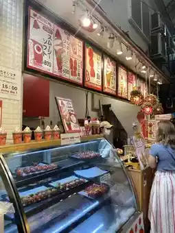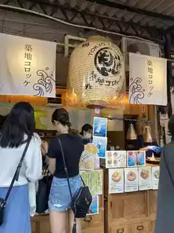 In addition to sashimi and seafood, there are many snacks to eat at the Tsukiji market outside