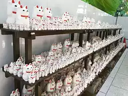 The temple is also known for its many maneki-neko (beckoning cats). One theory is that it is the birthplace of maneki-neko (beckoning cats).
