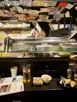 Omoide Yokocho is a cramped space where you see rows of tiny restaurants, some of them just with a counter, some of them with only a couple of tables. There is not much space to walk in these narrow alleys, you better bring a small bag with you. There are seafood and grilled meat - the grilled chicken has many different parts available, kushiyaki food on sticks, ramen noodles, etc. In winter, you may enjoy oden (food in hot broth).