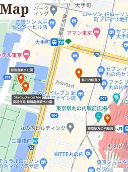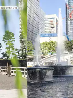 ✔︎Wadakura Fountain Park A cool park with fountains and waterfalls in the outer gardens of the Imperial Palace⛲️Despite being located right next to Tokyo Station, it's filled with greenery and is truly an oasis in the city🥺The large fountain has a fountain show once every 15 minutesThere are benches surrounding the fountain, so it's nice to relax