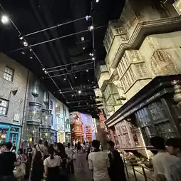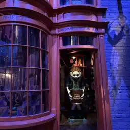 Diagon Alley is a key setting in the Harry Potter films. It's home to Ollivander's Wand Shop, where wizard wands are sold, and Eeyore's Owl Shop, where Hagrid gave Harry a white owl. There's also a candy shop.