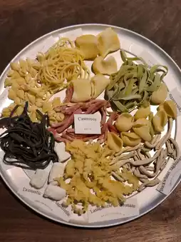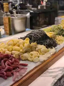 The fresh pasta noodles are kneaded that day and lined up in the display case, but you can choose your sauce and your favorite noodles.