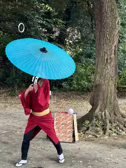 I was lucky to unexpectedly get to see a Daikagura performance. It's not as flashy as Western juggling, but it was thrilling and the audience applauded.