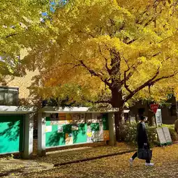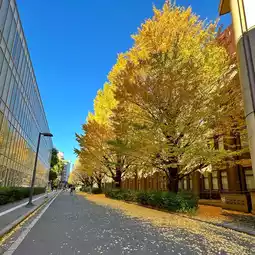 At the University of Tokyo, you will see golden yellow ginkgo leaves lining the road leading to the gate, surrounded by classic European-style brown brick buildings on both sides. The photos look great together. The ground is covered with fallen ginkgo leaves, turning yellow all the way. I guarantee that everyone will be impressed. It is also easy to get to, just one station from Ueno. Importantly, there are not many people. There are many spots and angles for taking beautiful photos.
