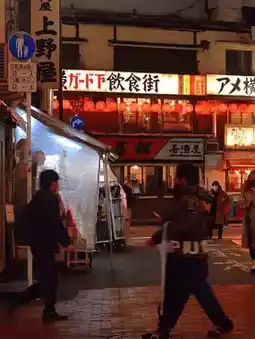Another famous thing is the food at Ameyoko Market. The market area has fresh seafood that you can eat on the side of the road. There are also many ramen shops, dessert shops, and bars. You can stay here all day without getting bored.