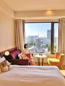 You can see the Skytree and Sensoji Temple from the rooms, and you can enjoy the scenery of Asakusa that changes over time while staying at the hotel. The "Deluxe Twin Room" is a very spacious and elegant Japanese-Western eclectic room. You can see Sensoji Temple from the window, and it is very picturesque 🖼 The "Yose Twin Room" is a concept room inspired by the yose, and you can enjoy a Japanese atmosphere that is typical of Japan. You can also see the Tokyo Skytree from the room.
