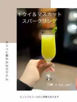↪︎ A crisp and refreshing cocktail made with kiwi and muscat as the base and sparkling wine