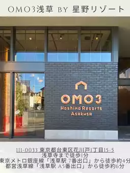 OMO3 Asakusa by Hoshino ResortsHoshino ResortsAsukusa1-15-5 Hanakawado, Taito-ku, Tokyo 111-00331-minute walk from Sensoji Temple4-minute walk from Exit 7 of Kiyokusa Station on the Tokyo Metro Ginza Line6-minute walk from Exit A5 of Asakusa Station on the Toei Asakusa Line