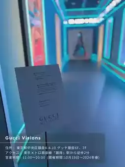 Address | 6F, 7F Gucci Ginza, 4-4-10 Ginza, Chuo-ku, Tokyoopen | 11:00-20:00 (Event period: October 19th to spring 2024) Closed | Same as Gucci Ginza Access | 2-minute walk from Ginza Station on the Tokyo Metro Ginza Line | Free entry, no reservation required #guccivisions #Ginza #GUCCI #Gucci #Winter outing trends #Limited time only #Gucci Ginza Gallery #Experience-based spot #Tokyo sightseeing #Tokyo trip #Tokyo